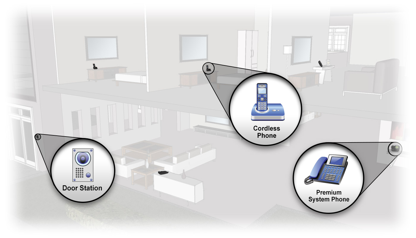 The Communication System includes telephony products as well as solutions for room-to-room communication throughout the home.