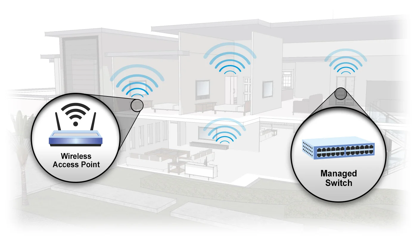 Much more than just a connection to the Internet, a wired and wireless network is the critically important digital foundation used by a modern home’s control and entertainment systems. It provides the communications pathway, indoors and out, that enables the dozens or hundreds of technology devices to seamlessly and reliably work together day after day for years on end. AUDIOVISIONS uses Business Class and Enterprise Class network solutions which are designed to work in critical environments where network downtime and spotty performance are not acceptable. Additionally, these products are designed to provide significantly improved coverage area, greater speed, and centralized connection management of portable devices as they move throughout the home. A robust network enables smooth, high- quality streaming of movies and other videos from services like Netflix and Hulu, and popular online music offerings such as Pandora, SiriusXM, and Spotify. And when you’re away, a properly designed and configured network can provide the ability to monitor surveillance cameras, arm/disarm the security system, or heat up the pool or spa in advance of returning home.