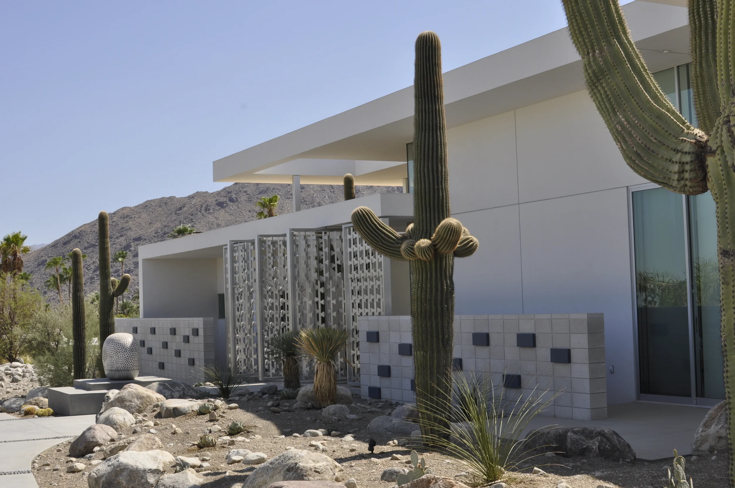 In Palm Springs, the sun’s rays create heat and glare that can damage artwork and furnishings. The Lutron shades protect the art work plus provide privacy when needed.